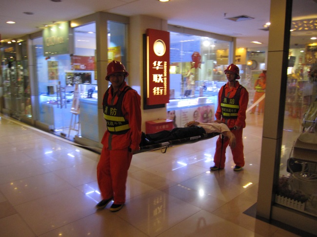 6月5日上午09:29分,深圳华联街地铁商场突然浓烟弥漫,消防警铃响起,消防控制中心接到报警信号后,立即通知华联街安管员进行火情确认。现场确定发生“火情”后,华联街工作人员迅速组织客户疏散,并请求华联大厦消防控制中心增援,控制中心拉响紧急集合警铃通知华联大厦义务消防队迅速赶往“火灾”现场救援,同时通知消防总指挥及相关人员,并“拨打”110报警电话。