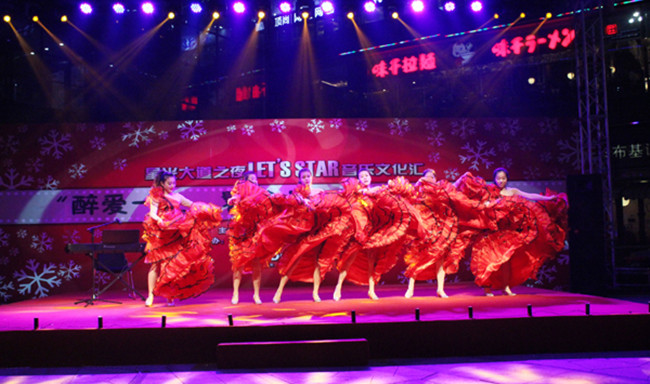 此外,由滨江区团委选送的情歌对唱和星光大道商家选送的川剧变脸也大放异彩。当5对情侣在场上以专业的水准演绎《小情歌》、《有一点动心》等经典情歌时,不得不让人拜倒在民间高手的魅力之下;当川剧演员就在你眼前几米远的地方快速的“变脸”而你却找不到一丝破绽时,不得不让人感叹中国传统文化的博大精深,现场不时爆发出雷鸣般的掌声。活动间隙,来自华艺公司的演员们还为现场观众送上了精彩的舞蹈表演。同时,活动中还穿插了抽奖环节,点燃了现场的节日氛围。