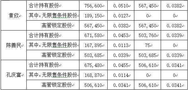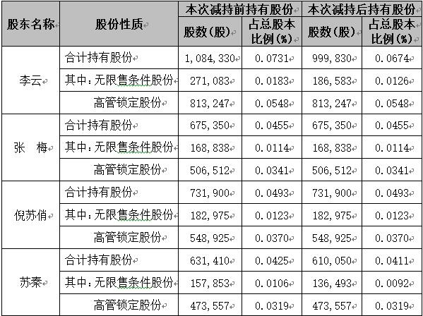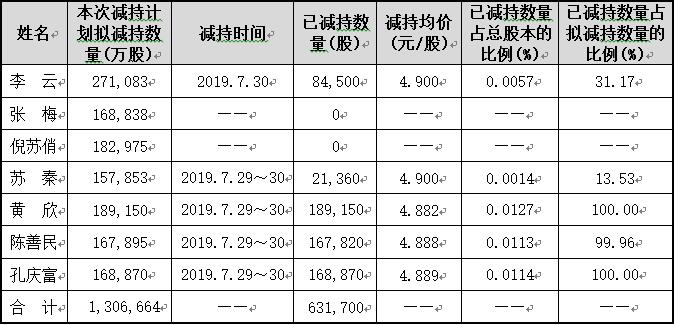 说明:公司上述董事、监事和高级管理人员均采用集中竞价方式进行减持,合计减持公司股份631,700股,占公司总股本的比例为0.0426%,占本次减持计划中拟减持数量的比例为48.34%。