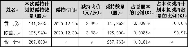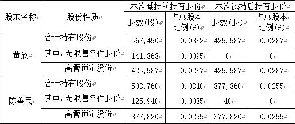 说明:公司上述监事和高级管理人员均通过集中竞价方式进行减持,其中黄欣完成了本次减持计划,陈善民减持数量过半。