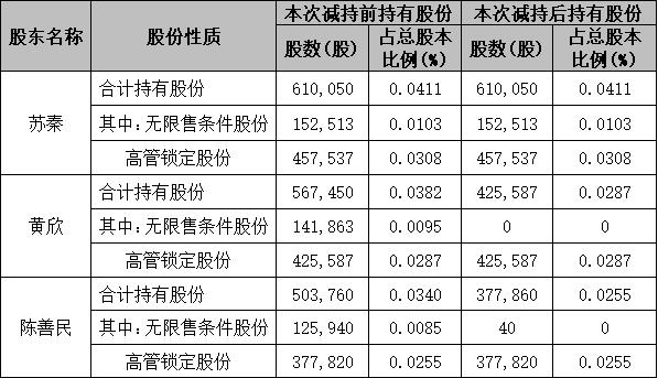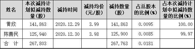 说明:公司上述监事和高级管理人员均通过集中竞价方式进行减持,其中黄欣完成了本次减持计划,陈善民减持数量过半。