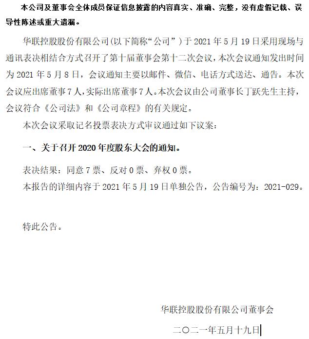 华联控股股份有限公司第十届董事会第十二次会议决议公告