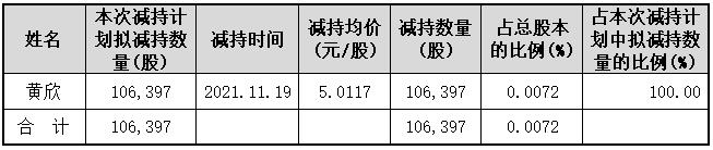 (1)2021年11月22日,公司收到信息披露义务人黄欣的《持股变动告知函》,其通过证券交易所以集中竞价交易方式减持了所持有的部分公司股份,已完成了减持计划, 减持股份情况如下:
